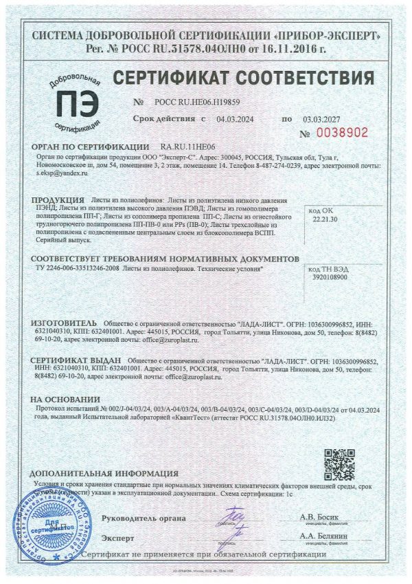 The LADA-LIST company produces and sells polypropylene sheets of its own production. For 25 years of successful work we have produced more than 40,000 tons of products, improved the production process (extrusion method) and earned trust of 200 regular customers.